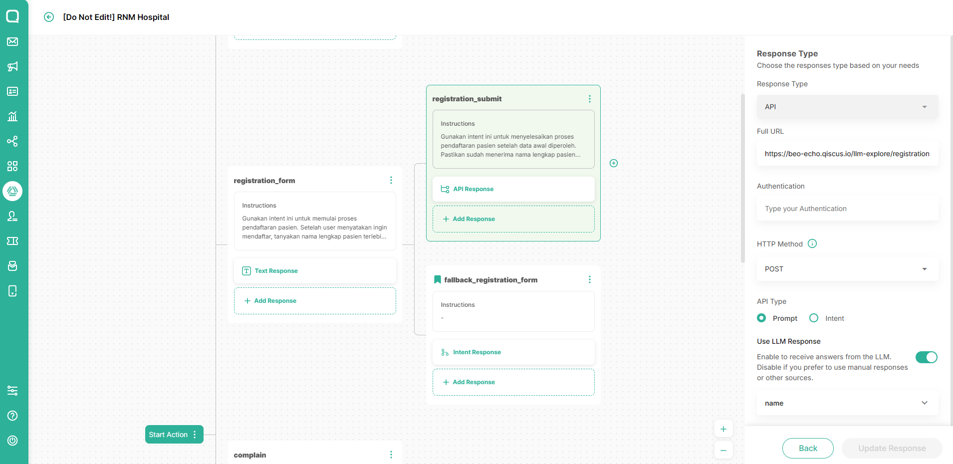e.g., if a patient asks, “I want to book an appointment,” the AI can send them directly into a WhatsApp Flow. In AgentLabs, you can utilize Conversation Flow and External API. Reference: https://documentation.qiscus.com/agentlabs/intent-classification#api-response