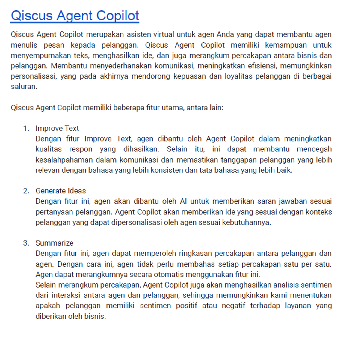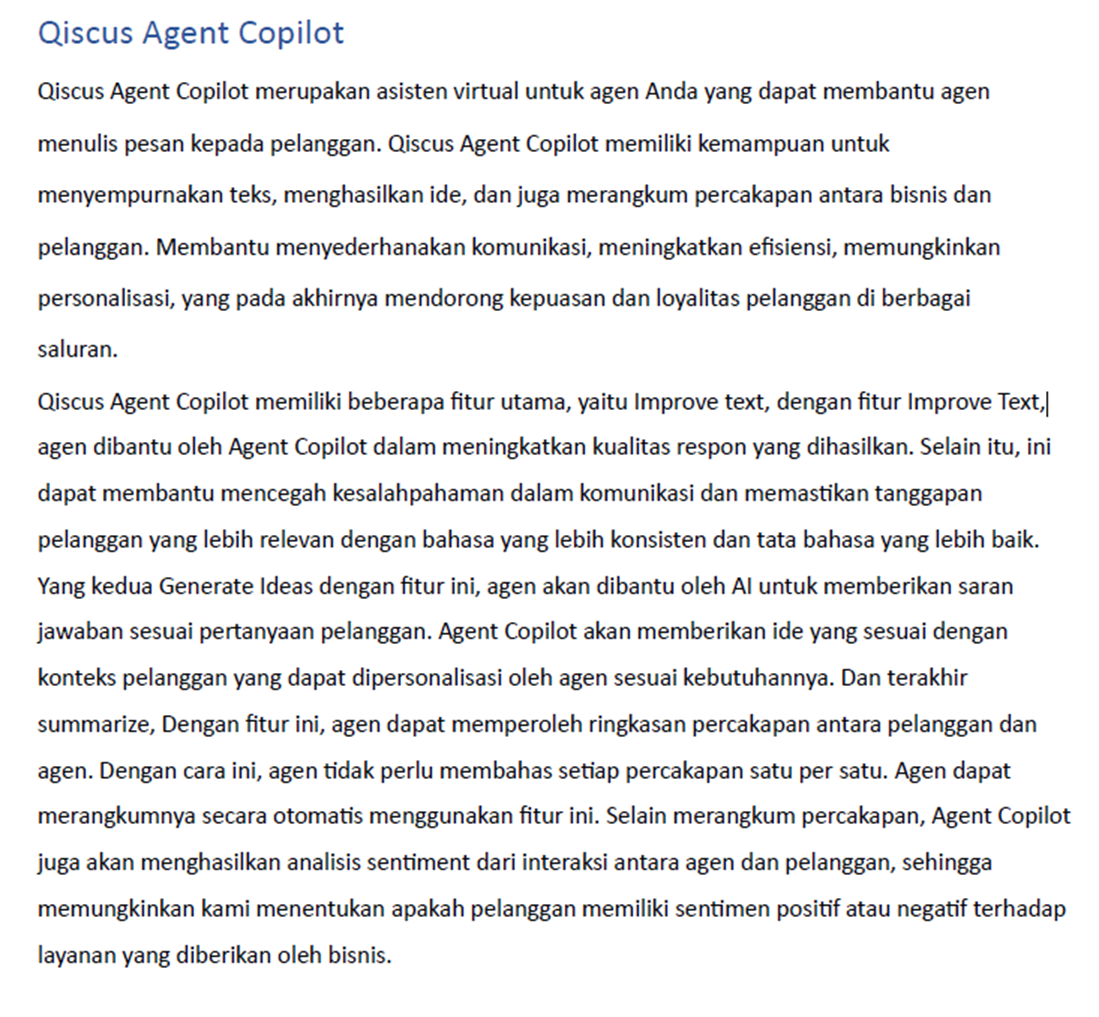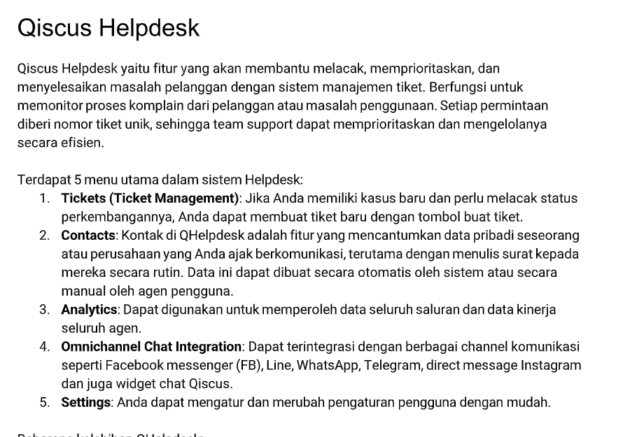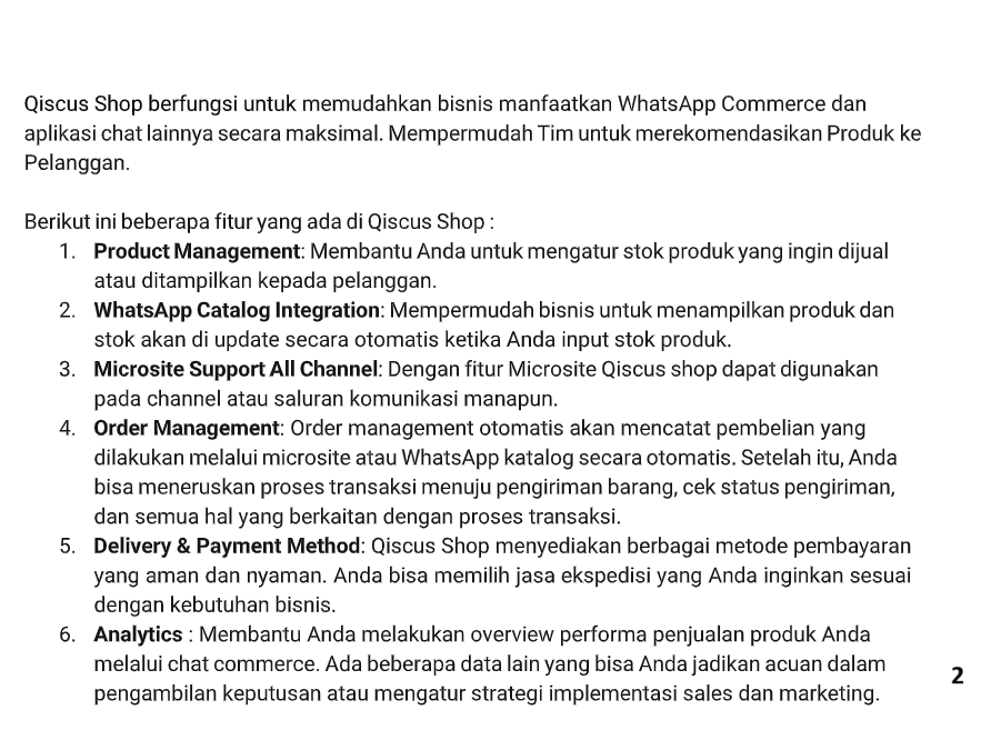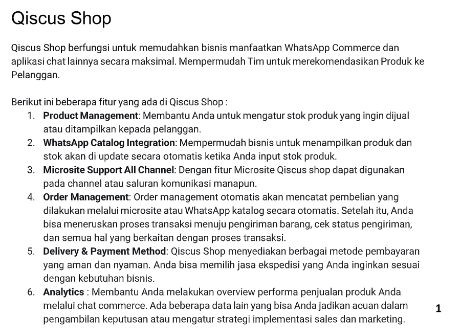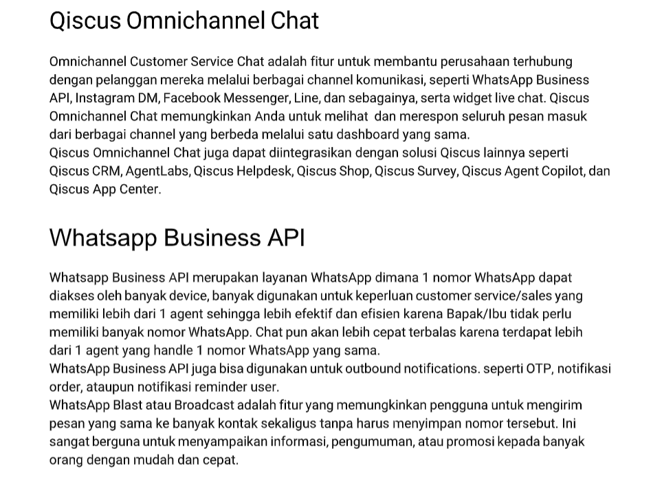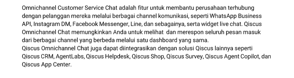 Example:Content 1: AgentLabs is only available on Qiscus Omnichannel Chat.